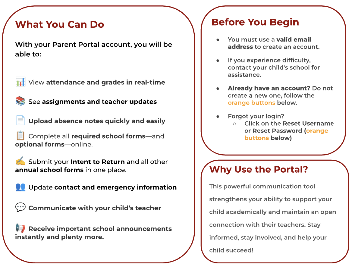 Through the Parent Portal, you can monitor your child's progress and stay connected with their school experience.