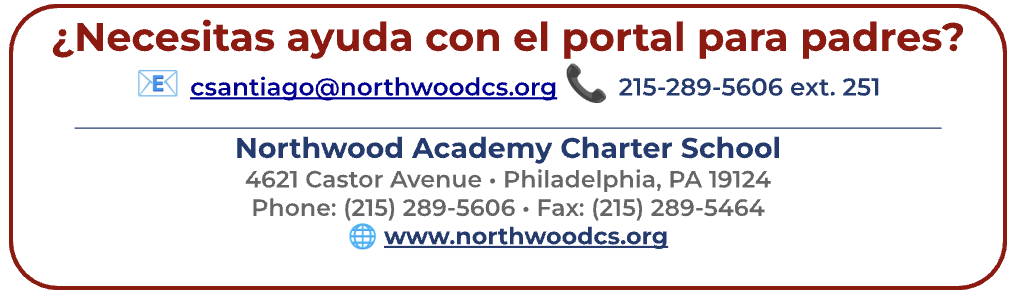 El Portal para Padres de Northwood Academy es una herramienta segura y práctica diseñada para que usted participe activamente en la educación de su hijo. A través del Portal para Padres, podrá seguir el progreso de su hijo y mantenerse al tanto de su experiencia escolar.