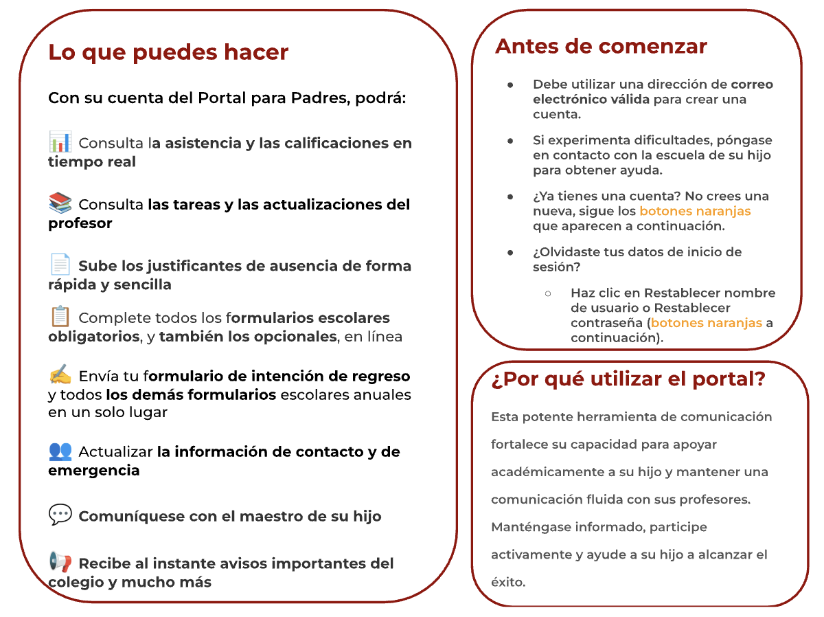 Haga clic en el botón naranja que aparece a continuación para continuar con el registro en el Portal para Padres.